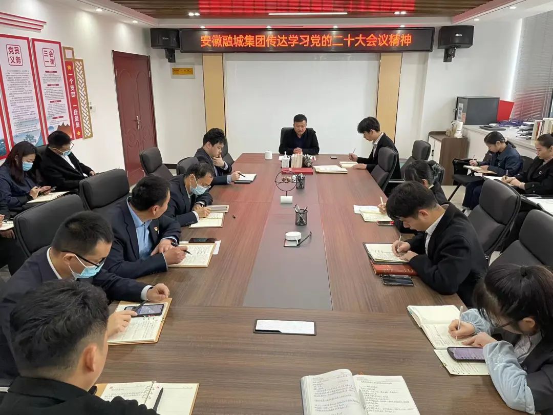 11月4日上午,安徽融城集團(tuán)傳達(dá)學(xué)習(xí)貫徹黨的二十大精神會(huì)議召開。會(huì)議傳達(dá)學(xué)習(xí)了黨的二十大精神,并對(duì)集團(tuán)公司抓好學(xué)習(xí)宣傳貫徹工作進(jìn)行動(dòng)員部署。