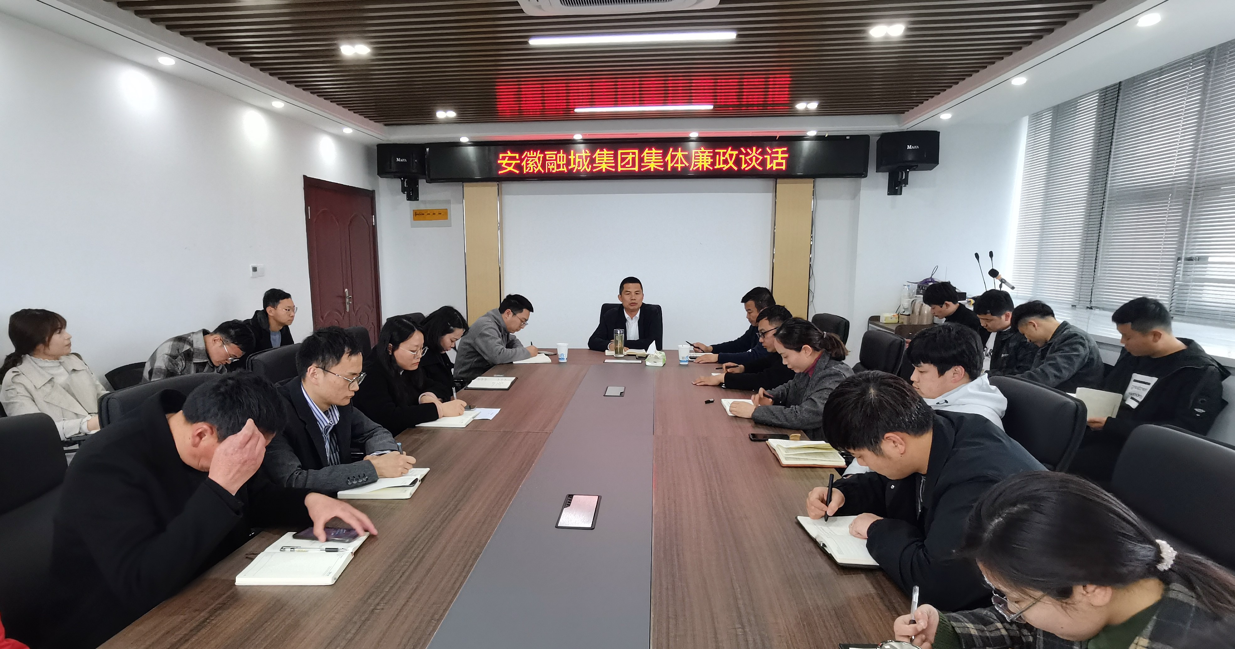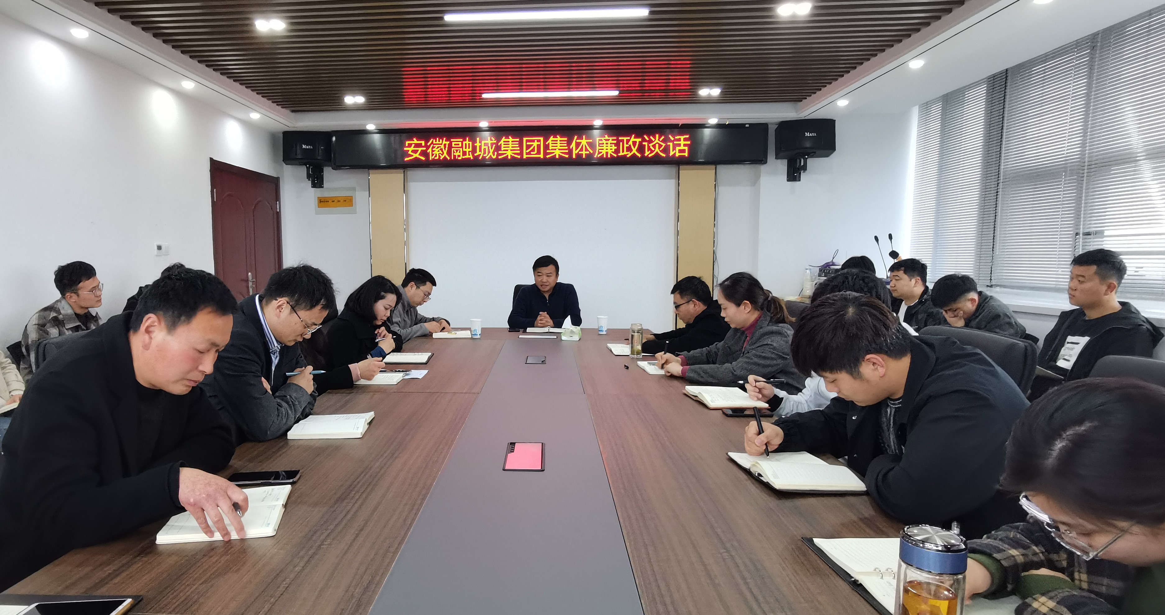 4月7日下,安徽融城集團(tuán)邀請高新區(qū)紀(jì)工委書記賀學(xué)飛對集團(tuán)全體職工進(jìn)行集體廉政談話,將黨風(fēng)廉政風(fēng)險(xiǎn)關(guān)口前移,做足做好事前提醒,全面增強(qiáng)廉潔自律意識,從思想上政治上扣好履職的第一粒扣子。