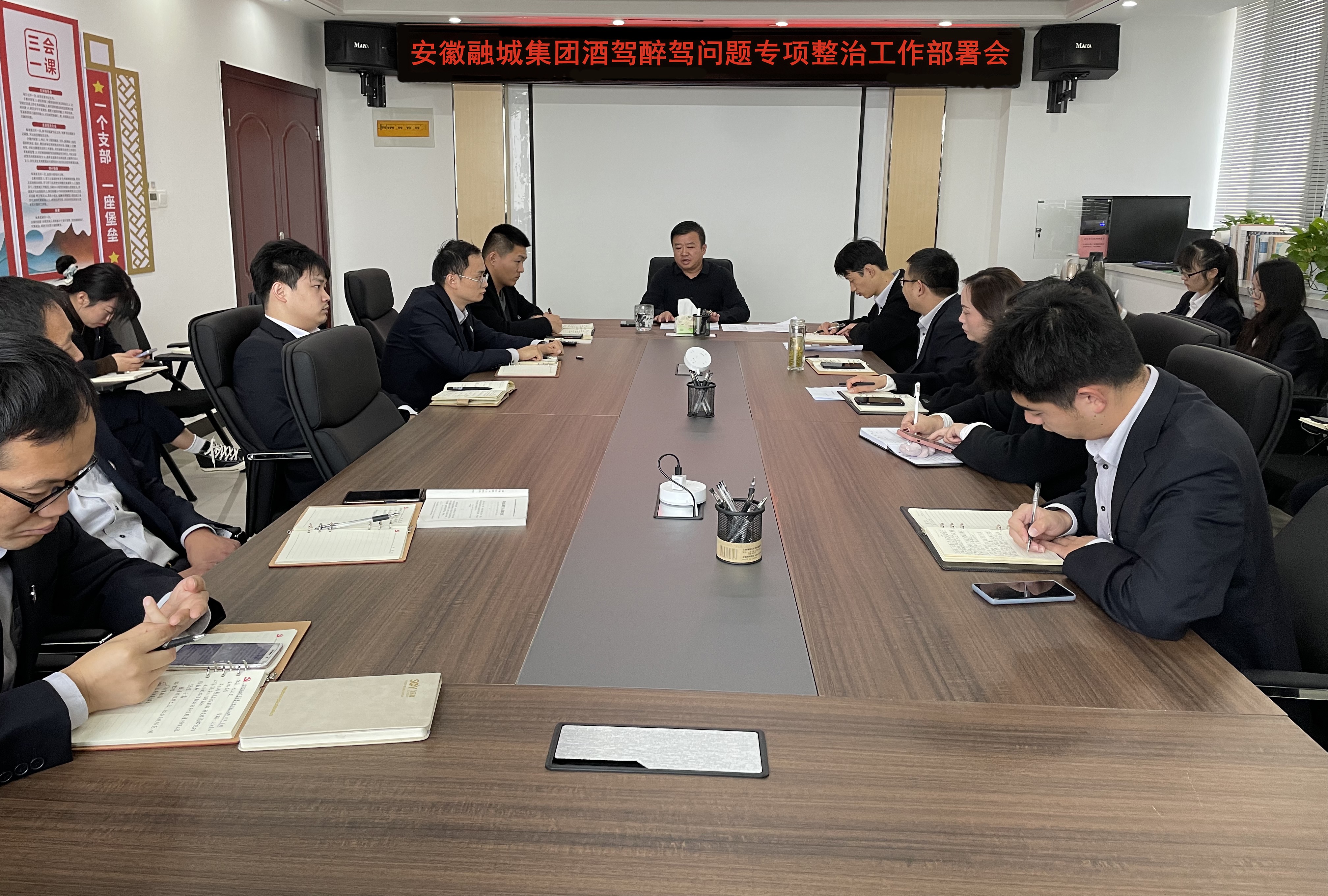 11月1日上午,安徽融城集團召開酒駕醉駕問題專項整治工作部署會。集團董事長、黨支部書記武建強主持會議,全體人員參加會議。
