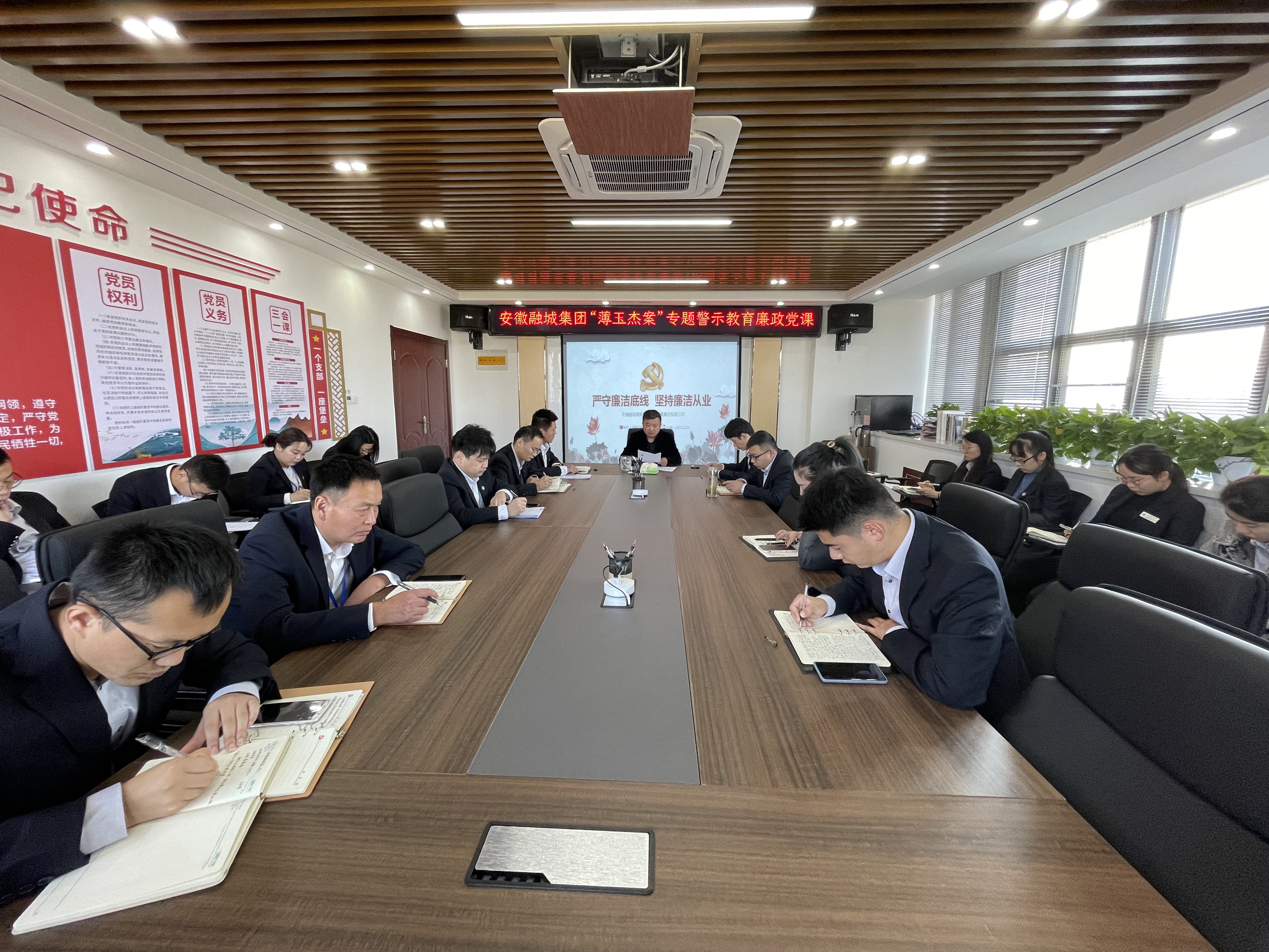 近日,安徽融城集團(tuán)召開(kāi)“薄玉杰案”專(zhuān)題警示教育廉政黨課,集團(tuán)董事長(zhǎng)、黨支部書(shū)記武建強(qiáng)主持會(huì)議并授課,全體黨員、發(fā)展對(duì)象、積極分子參加會(huì)議。