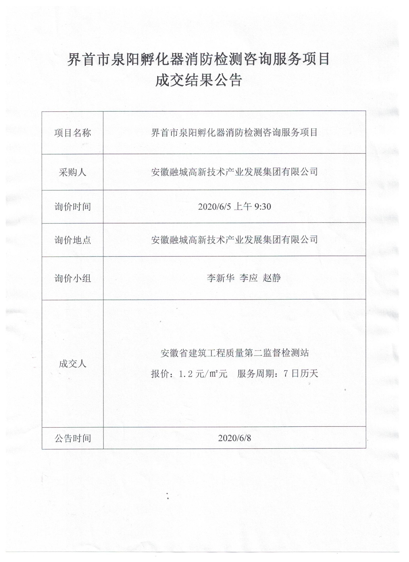 界首市泉陽孵化器消防檢測咨詢服務(wù)項(xiàng)目成交結(jié)果公告