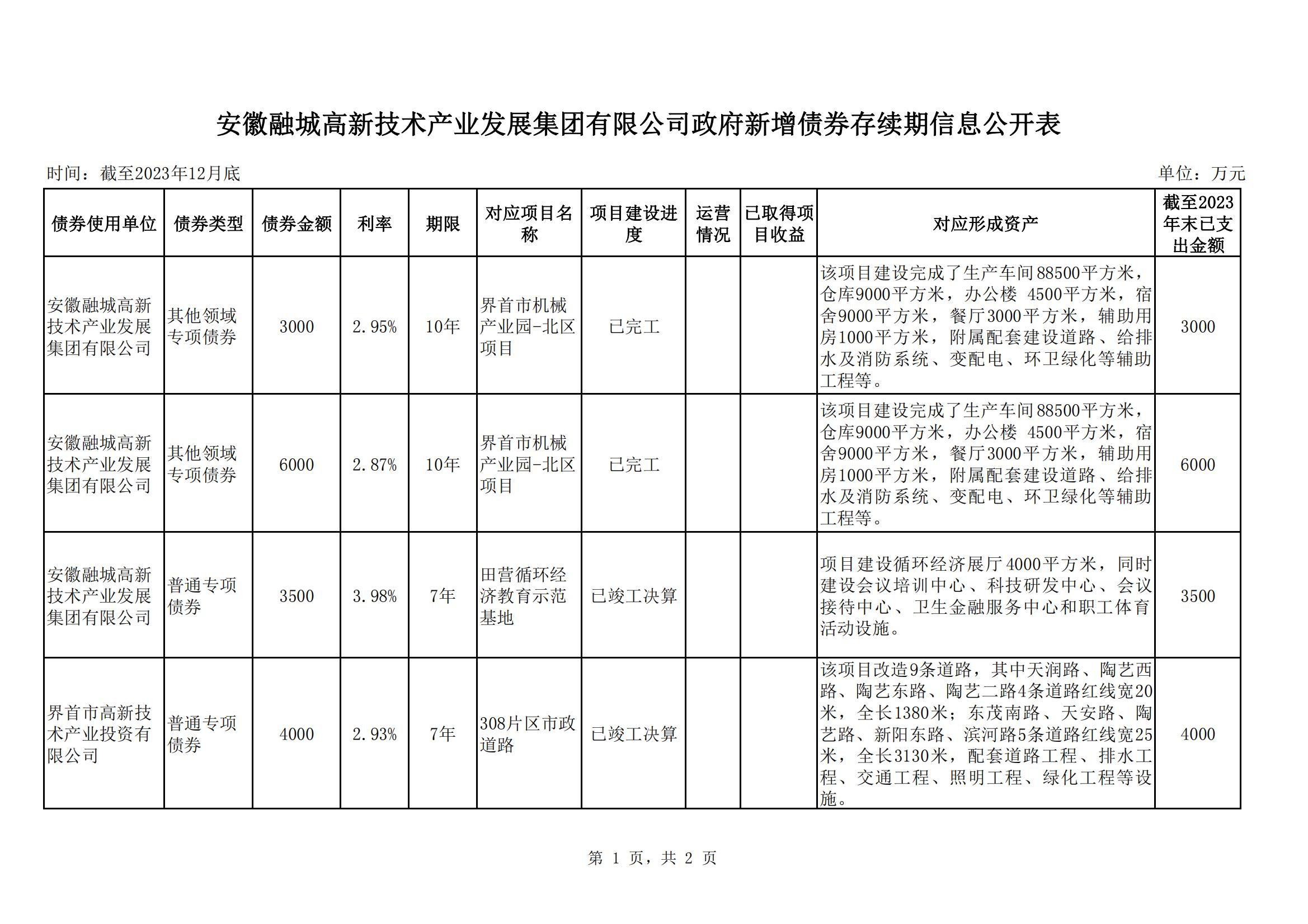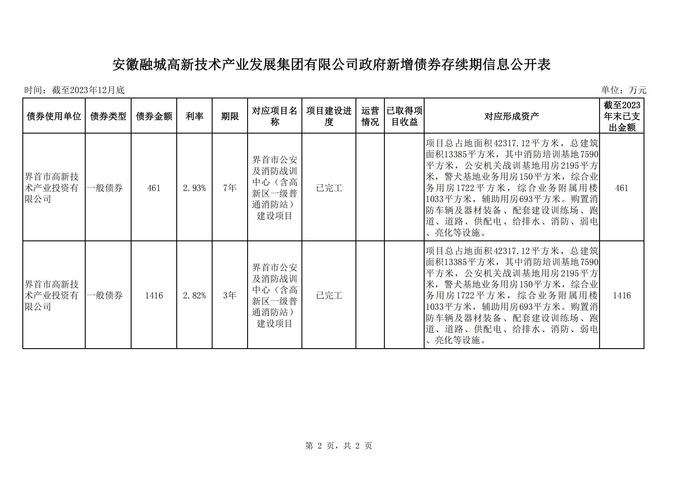 安徽融城高新技術(shù)產(chǎn)業(yè)發(fā)展集團有限公司政府新增債券存續(xù)期信息公開表